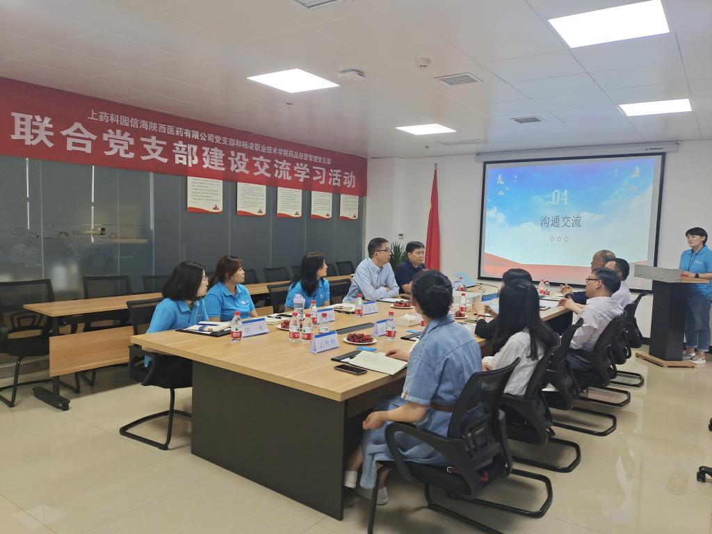 在上药陕西公司,药营支部党员参观考察了上药陕西公司物流中心和公司陕西DTP药房,了解了物流中心的规模、运作流程、管理理念,以及上药科园陕西DTP药房的发展、管理、服务等情况,随行党员结合专业建设、课程内容、教学实训、毕业生就业等进行了交流。