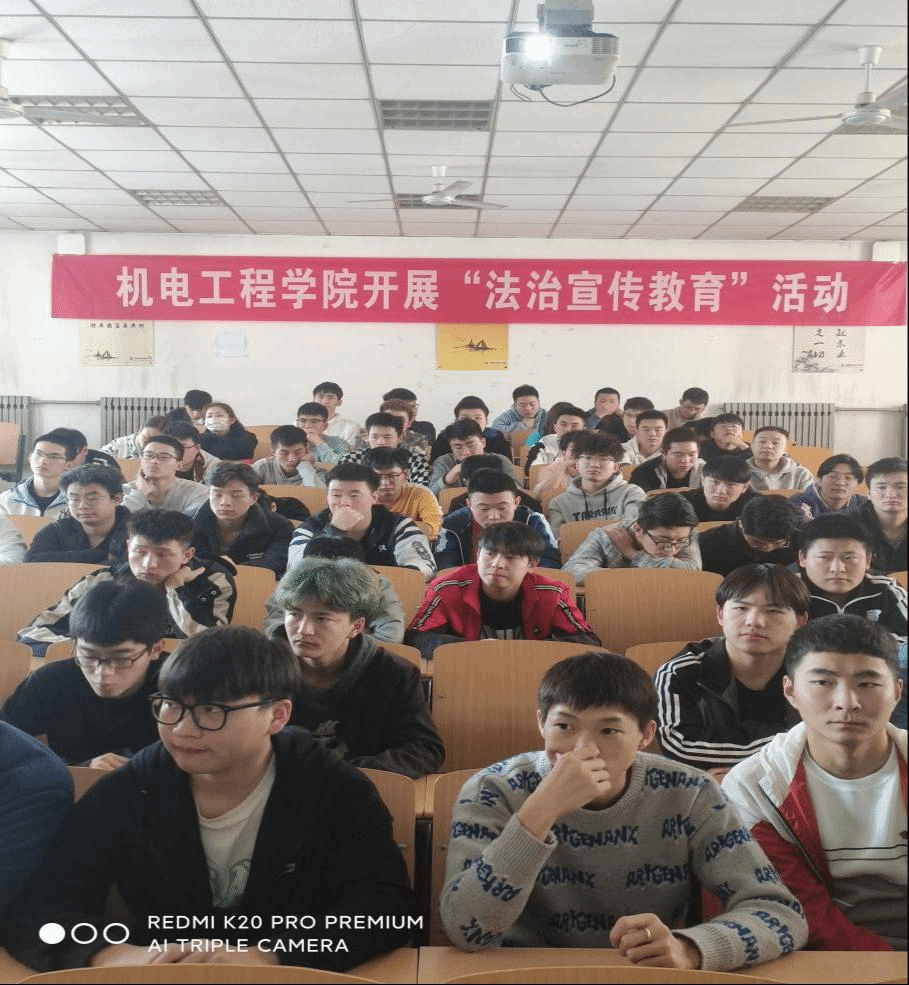10月29日下午,机电工程学院在南校区开展法治教育宣讲活动,机电工程学院2019级、2020级80余名学生代表参加了讲座。