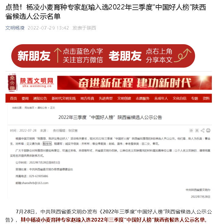 如今已经86岁高龄的赵瑜,依然矢志不渝、勤耕不息,步履蹒跚在农场试验地,谱写着“麦田的守望者”的感人事迹。