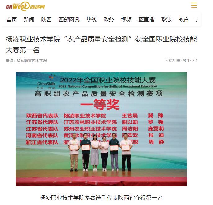 下一条:【陕西头条】杨凌职业技术学院“农产品质量安全检测”获全国职业院校技能大赛第一名