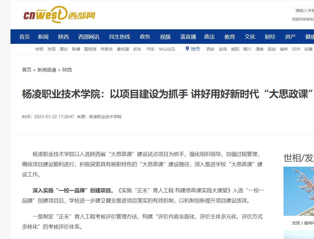 杨凌职业技术学院以入选陕西省“大思政课”建设试点项目为抓手,强化组织领导,加强过程管理,确保项目建设顺利进行,积极探索具有杨职特色的“大思政课”建设路径,深入推进学校“大思政课”建设工作。