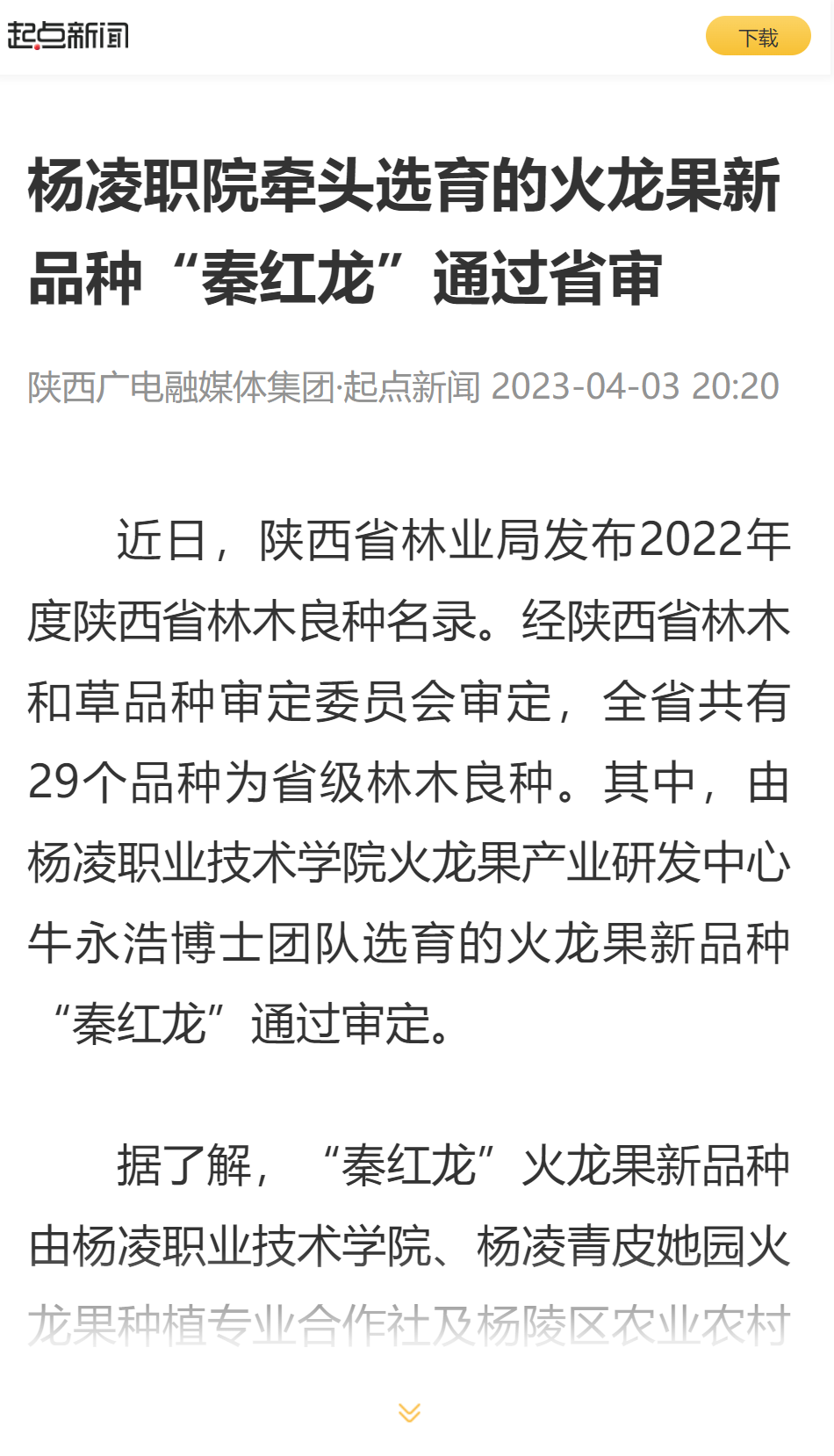 上一条:【杨凌发布】南果北“育”!杨凌职院火龙果新品种“秦红龙”通过省审