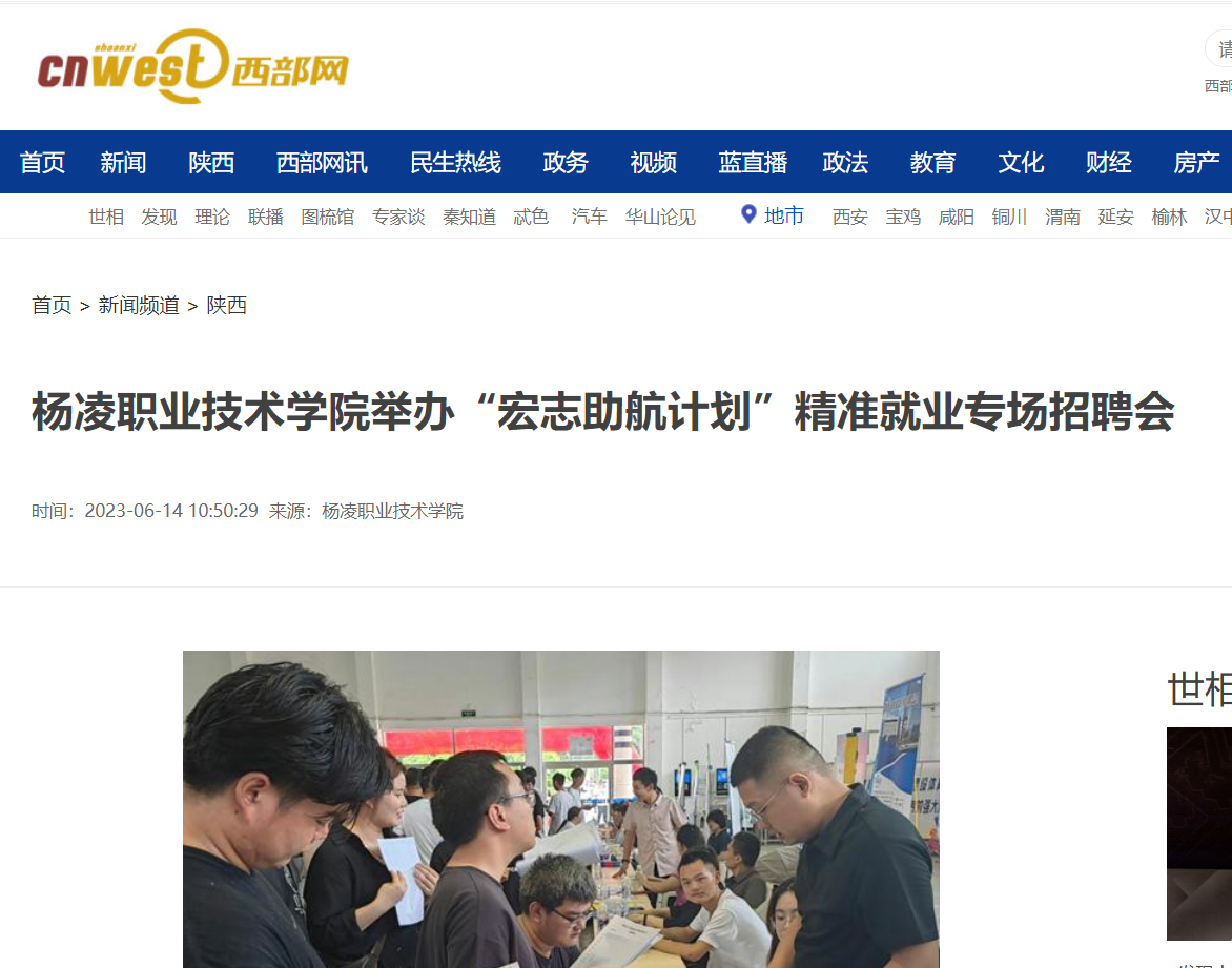上一条:【陕西头条】杨凌职业技术学院举办“宏志助航计划”精准就业专场招聘会