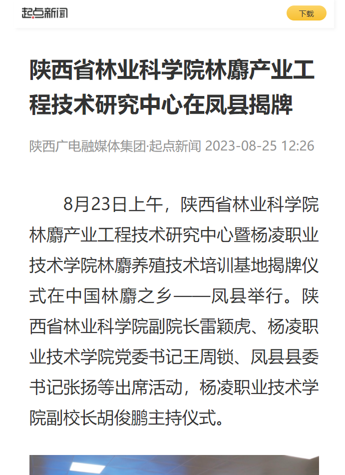 陕西省林业科学院林麝产业工程技术研究中心在凤县揭牌