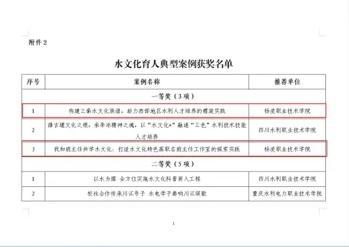 据悉,此次共有26所水利院校报送水文化育人典型案例,24所水利院校报送文明校园建设典型案例,经中国水利教育协会汇总初审、专家现场评审等程序,评选出水文化育人典型案例一等奖3项、二等奖5项、三等奖8项;文明校园建设典型案例一等奖2项、二等奖5项、三等奖8项。