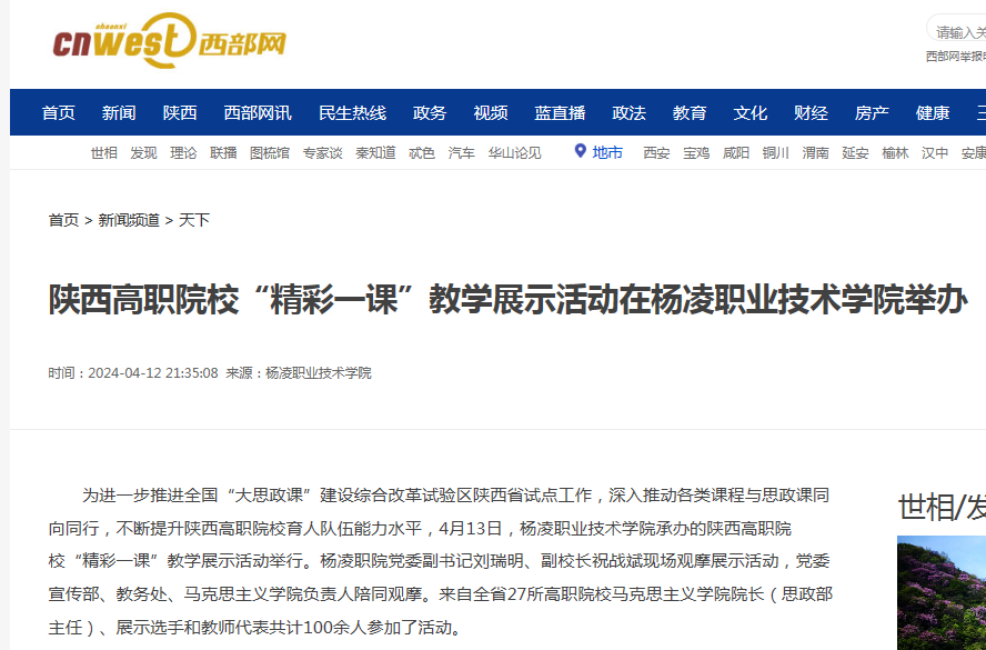 【西部网】陕西高职院校“精彩一课”教学展示活动在杨凌职业技术学院举办