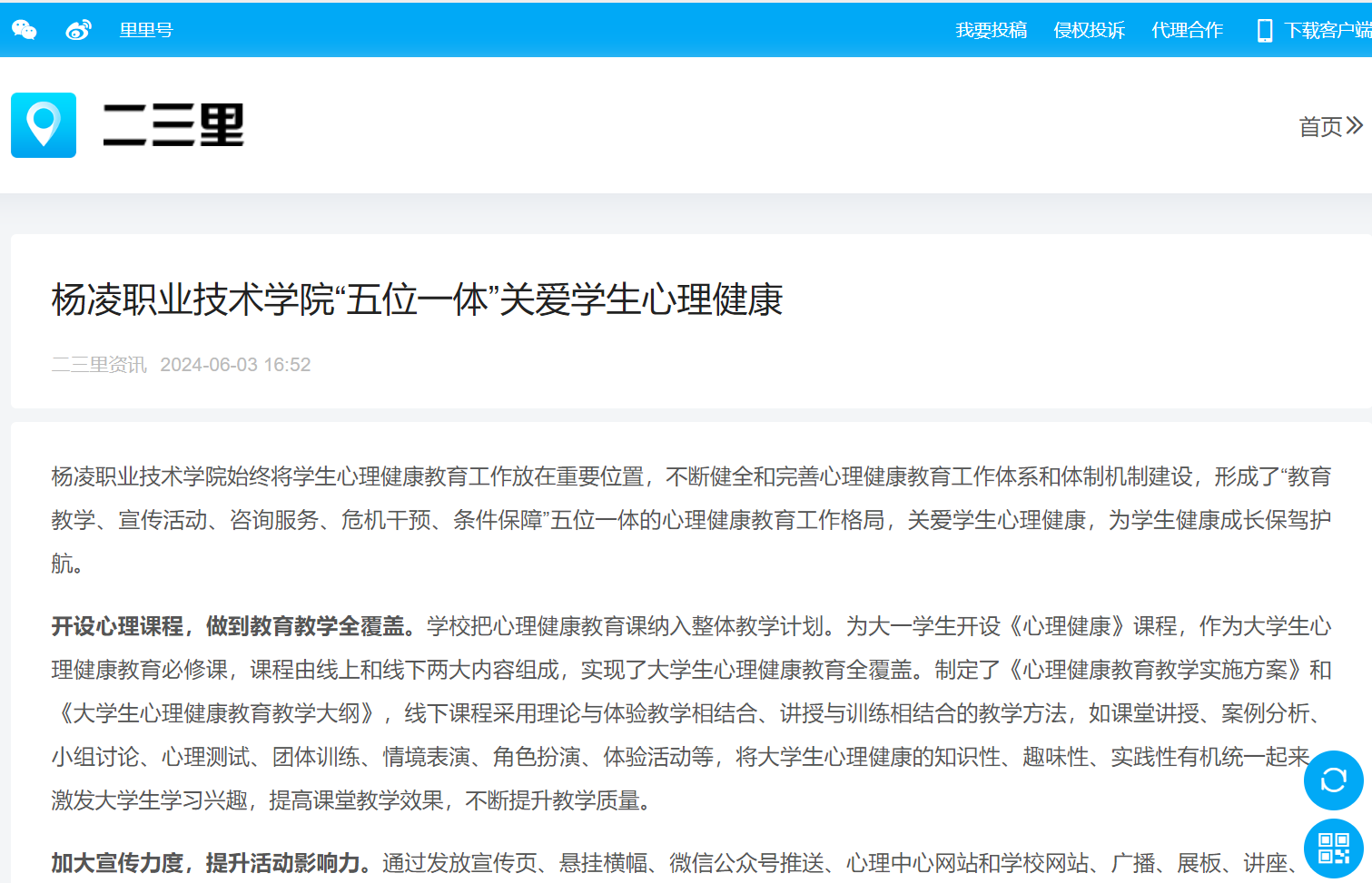 【二三里】杨凌职业技术学院“五位一体”关爱学生心理健康