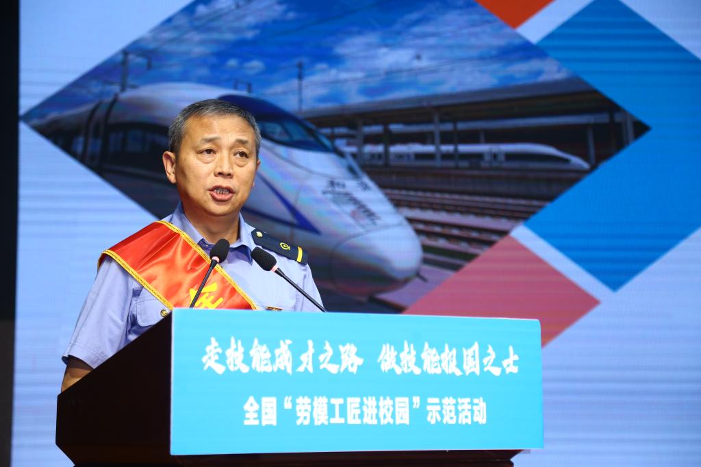 航天特级技师、国家级技能大师工作室领衔人、陕西省劳模创新工作室带头人杨峰,全国铁路首批动车组随车机械师、高级技师董宏涛,高级工程师、自然资源部第一大地测量队(国测一大队)队员任秀波,与师生们分享他们的奋斗故事、人生感悟以及成长经验,进一步弘扬劳模精神、劳动精神、工匠精神。