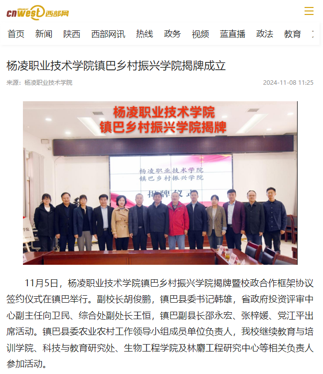 【西部网】杨凌职业技术学院镇巴乡村振兴学院揭牌成立