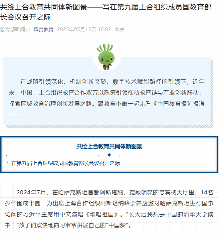 【微言教育】 共绘上合教育共同体新图景——写在第九届上合组织成员国教育部长会议召开之际