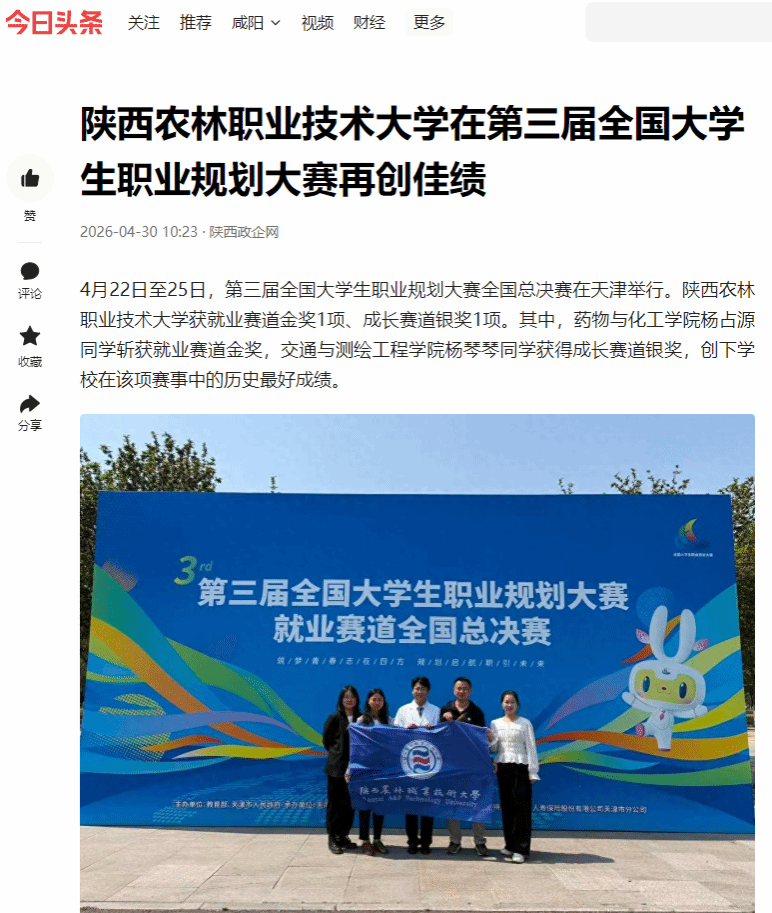 【今日头条】陕西农林职业技术大学在第三届全国大学生职业规划大赛再创佳绩