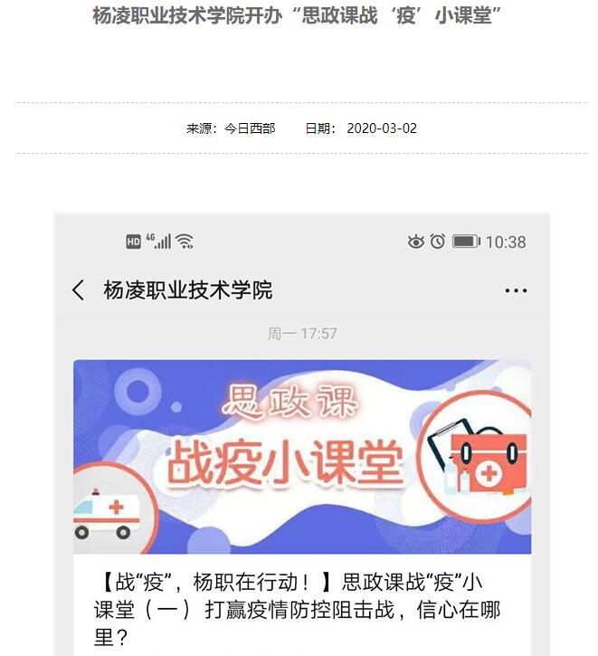 “思政课战‘疫’小课堂”共5期,包括“打赢疫情防控阻击战,信心在哪里?”、“疫情面前读懂担当”、“90后,行!”、“疫情给我们上的‘三堂课’”、“致敬‘逆行者’”,由马克思主义学院6位教师主讲。该课堂紧紧围绕打赢疫情防控的人民战争、总体战、阻击战这一主题,结合疫情防控实践,采取文字、图片、视频等形式,从坚定必胜信心、勇于担当作为、涵养家国情怀、致敬逆行英雄等不同角度,引导广大学生正确认识、科学理性应对疫情,切实增强自我保护意识,并在疫情防控的重大实践中感受中国力量和民族精神,为打赢疫情防控阻击战贡献青春力量。