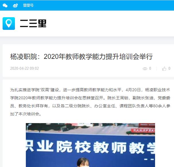 为扎实推进学院“双高”建设,进一步提高教师教学能力和水平,4月20日,杨凌职业技术学院2020年教师教学能力提升培训会在思辨堂召开。院长王周锁,副院长张迪,党委委员、教务处长拜存有,以及各二级分院院长、办公室主任、课程团队负责人等80余人参加了本次培训会。