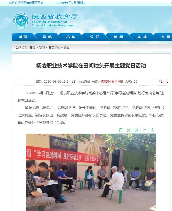 6月5日上午,杨凌职业技术学院党委中心组举行“学习赵瑜精神 践行劳动之美”主题党日活动。