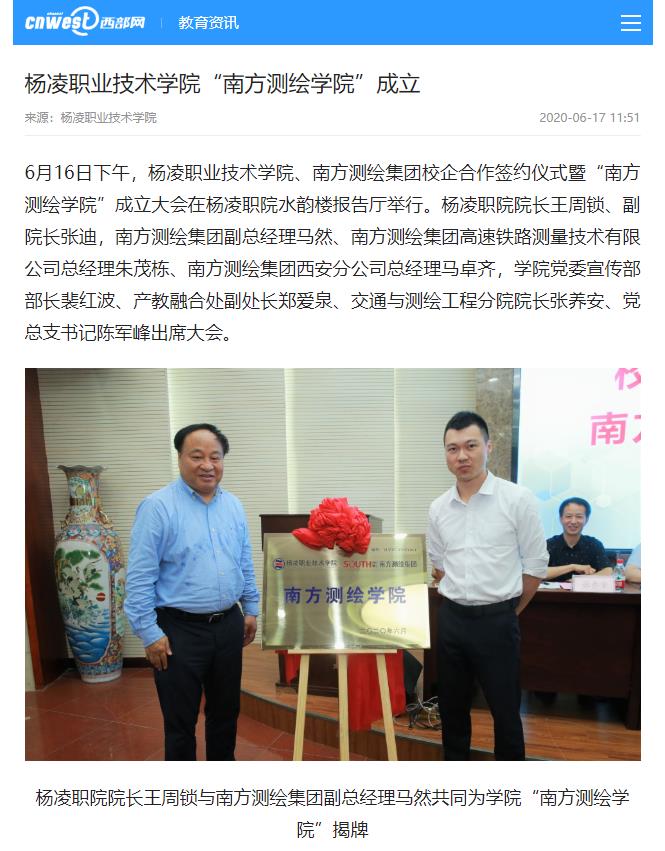 杨凌职业技术学院南方测绘学院的成立,标志着杨凌职院与南方测绘集团在合作办学方面又迈出了关键的一步,必将促进产业链、创新链和教育链三链融合,实现校企双方互利共赢,为行业发展作出持续贡献。