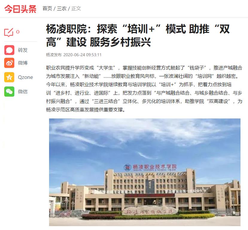 杨凌职业技术学院培训工作由来已久、颇具特色,全国首个职业农民大专班就在这里开设,多年来为全国各地培养了不计其数掌握先进农业科学技术的新型职业农民,被公认为“职业农民成长的摇篮”。所谓谋定而后动。2019年11月,教育部等14部门印发《职业院校全面开展职业培训促进就业创业行动计划》,推动职业院校面向全体劳动者特别是重点人群及技术技能人才紧缺领域开展大规模、高质量的职业培训,为实现更高质量和更充分就业提供有力支持。杨凌职业技术学院培训当头,创新培训模式,推进培训体系建设,实现全过程、全方位育人。