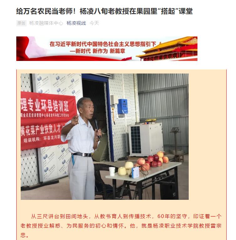 从三尺讲台到田间地头,从教书育人到传播技术,60年的坚守,印证着一个老教授授业解惑、为民服务的初心和情怀。他,就是杨凌职业技术学院教授雷宗忠。