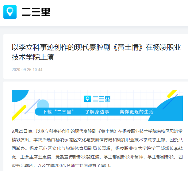 【二三里】以李立科事迹创作的现代秦腔剧《黄土情》在杨凌职院上演