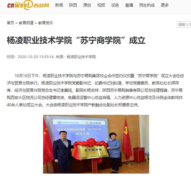【西部网】杨凌职业技术学院“苏宁商学院”成立