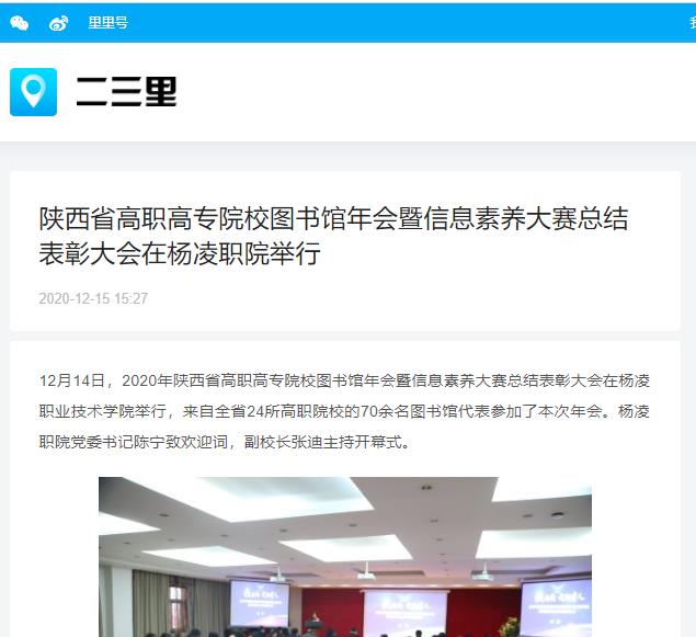 12月14日,2020年陕西省高职高专院校图书馆年会暨信息素养大赛总结表彰大会在杨凌职业技术学院举行,来自全省24所高职院校的70余名图书馆代表参加了本次年会。杨凌职院党委书记陈宁致欢迎词,副校长张迪主持开幕式。