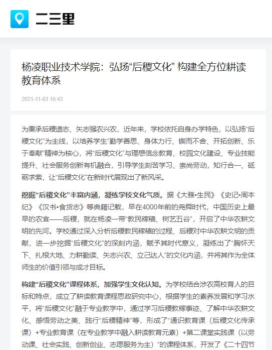 【二三里】杨凌职业技术学院弘扬“后稷文化” 构建全方位耕读教育体系