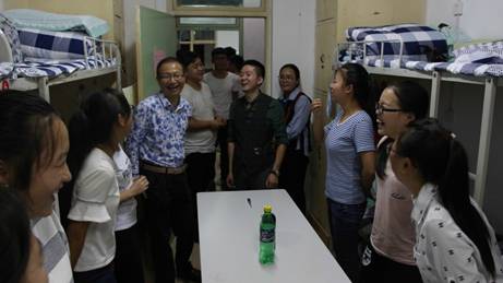 报到工作结束后,分院党总支书记高掌平老师带队进宿舍逐一看望新生,与新同学亲切交谈,询问困难、解答疑问,高书记勉励新同学,大学生活是独立生活开始,不仅要学会自己学习,更要学会自己照顾自己,让父母少操心,让自己得到更好的成长。