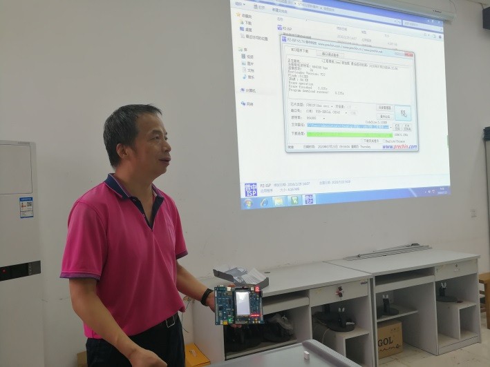 电子教研室韩讲周老师在NOD617给教研室老师和暑期留校集训学生讲解EDA。