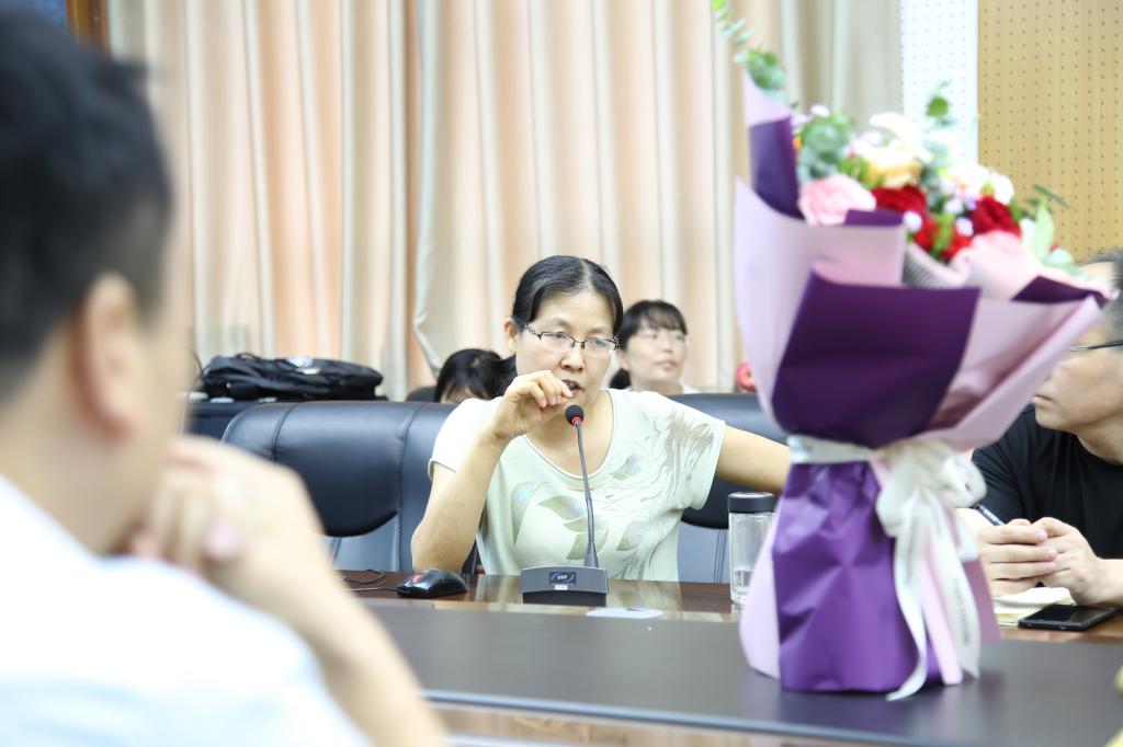 最后,分院教师就学生管理、教学方式、兴趣培养以及教学心得进行了愉快交流,分院李小平老师还在会上即兴发挥为大家赋诗一首,赢得了热烈掌声。