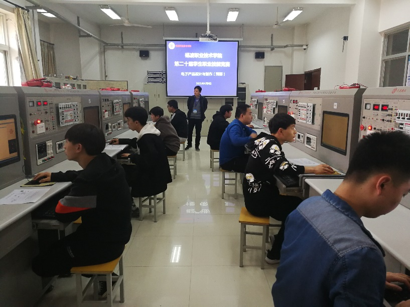 2021年4月9日,由信息工程分院承办的第二十届学生职业技能竞赛项目“电子产品设计与制作”预赛环节在南校区醒钟楼NOD625模拟电子技术实训室成功举行。