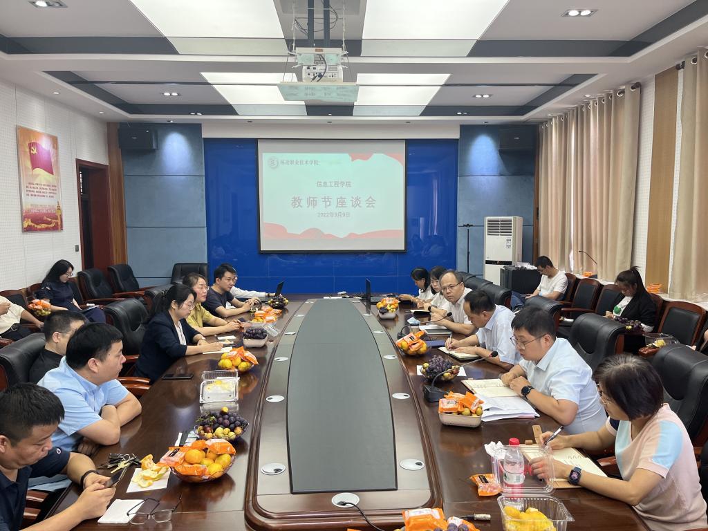 信息工程学院召开全体教职工会议,于9月9日下午欢聚一堂,共同庆祝第38个“教师节”,同时举行了以老带新签约仪式。