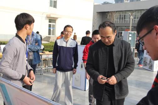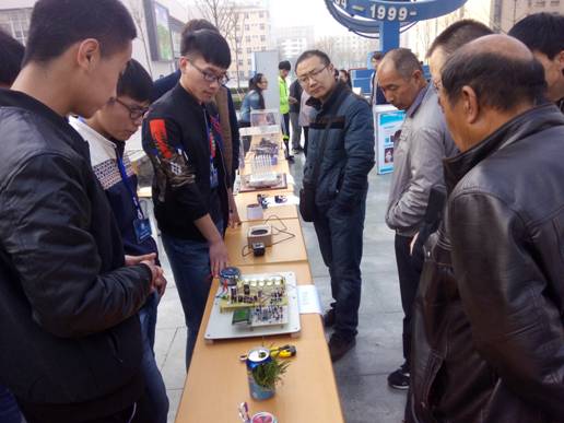 活动得到了专业老师和校领导的大力支持,全院上下不少教职工和各学生都参与了进来,学院党委书记赵曼老师亲临现场,当他看到学生制作的家庭自动监控系统及利用废旧纸箱、器材制作的家电产品时,赵书记结合党中央“十八届五中全会”的“创新发展”和“绿色发展”思路,勉励同学在今后的学习生活中坚持“创新、环保、绿色”的理念,全面提升自身综合素质和专业技能水平。