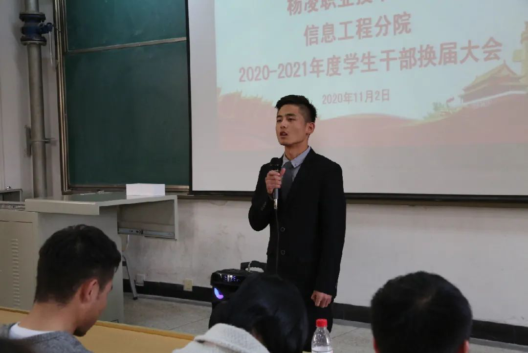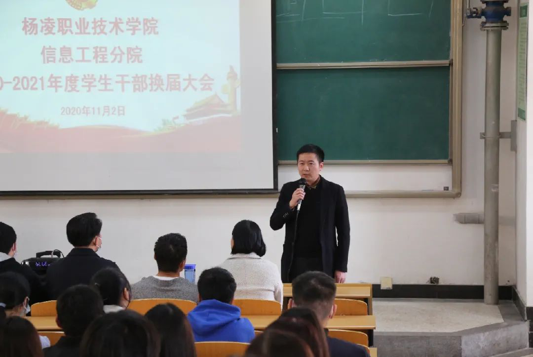 11月2日,信息工程分院2020-2021年度分院学生干部队伍换届大会于醒钟楼D-201教室召开。