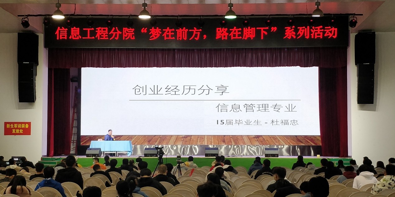 我院计算机信息管理专业2015届毕业生杜福忠做“创业经历分享”主题讲座。结合个人毕业后在北京工作及返回西安自主创业的经历,与新生分享了创业过程中的个人工作、生活的精彩故事。